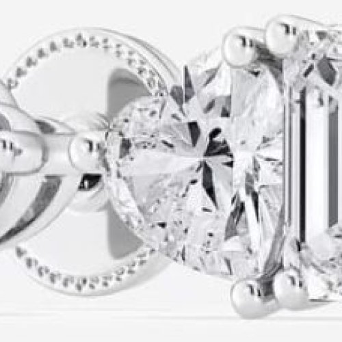 Heart and Emerald Cut White Gold Diamond Stud Earrings